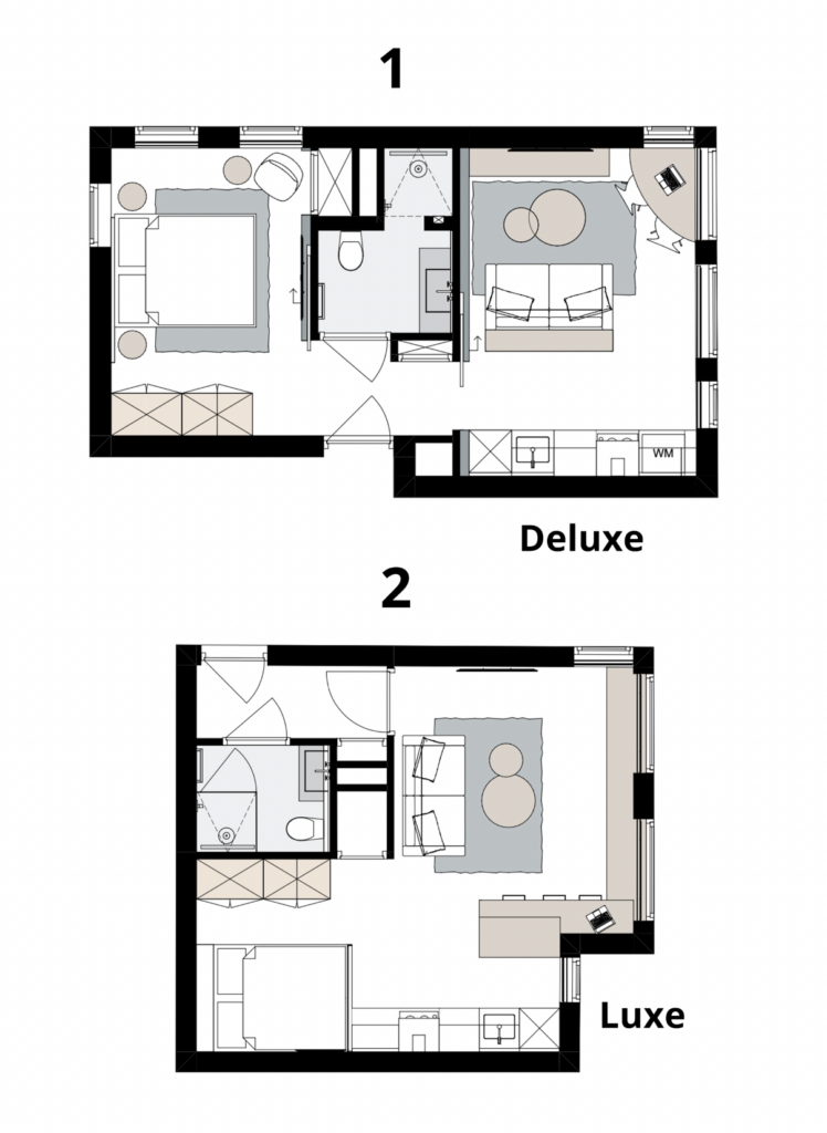 De volledig gemeubileerde en gestoffeerde appartementen/studio’s aan De Nieuwe Markt lenen zich perfect voor een langer verblijf. De appartementen (type Deluxe) beschikken over een aparte slaapkamer, een woonkamer, een compleet ingerichte keuken en een luxe badkamer met regendouche. De studio’s (type Luxe) zijn bijna identiek en beschikken over een afgeschermd slaapgedeelte. In het complex zijn 2 wasmachines en drogers aanwezig. Tijdens uw verblijf wordt er maandelijks (wekelijks is mogelijk) schoongemaakt en de receptie van Hotel Corps de Garde is 24/7 bereikbaar voor vragen, tips en extra hotelservices. De appartementen/studio’s zijn te boeken voor een verblijf van minimaal 3 en maximaal 6 maanden.